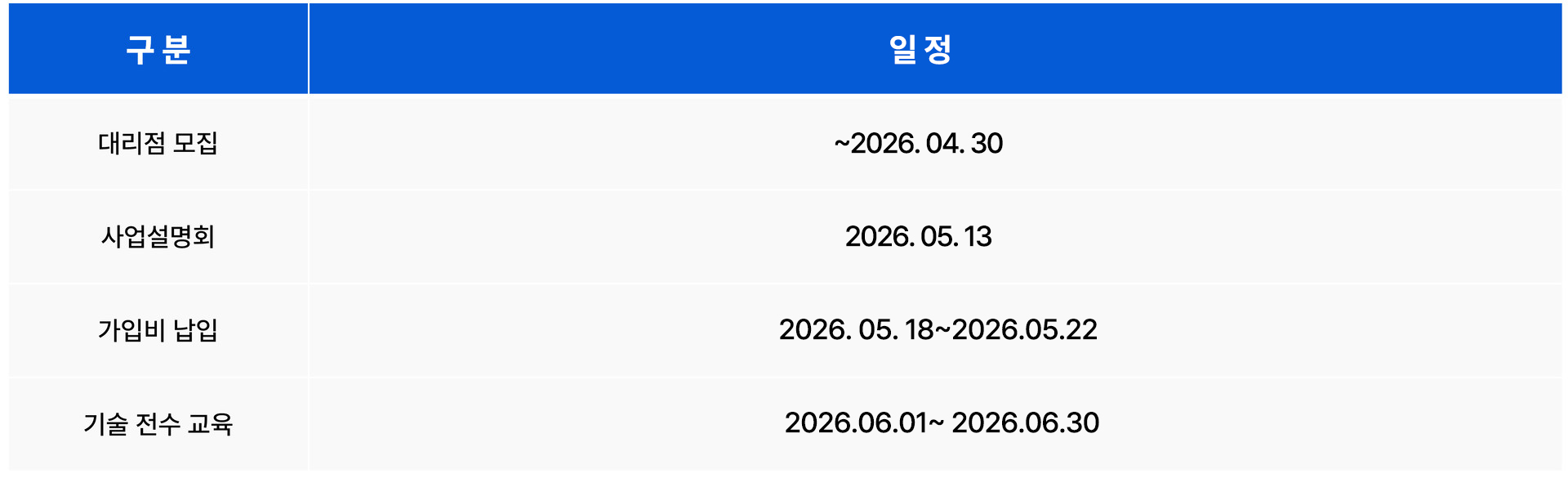 2026 대리점 모집 일정