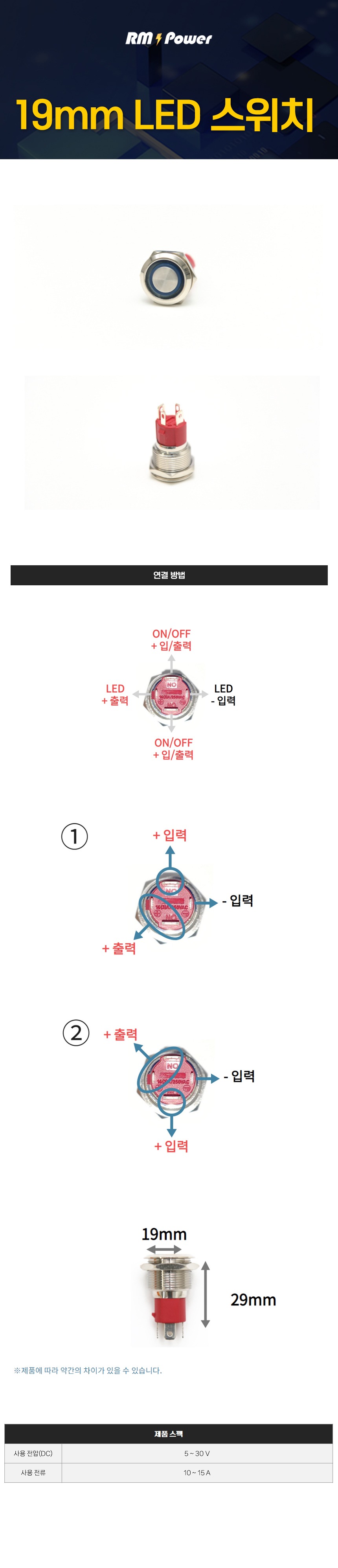 19mm LED 스위치