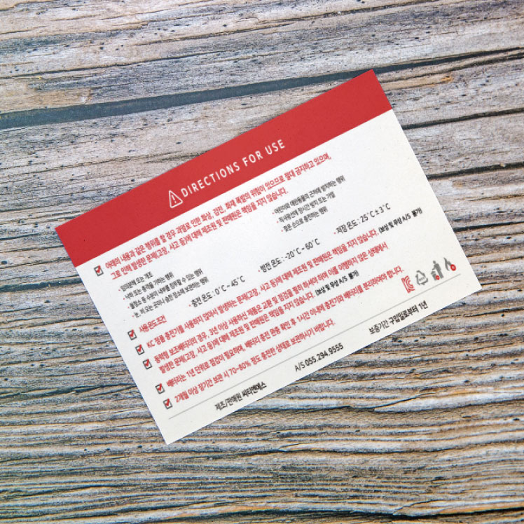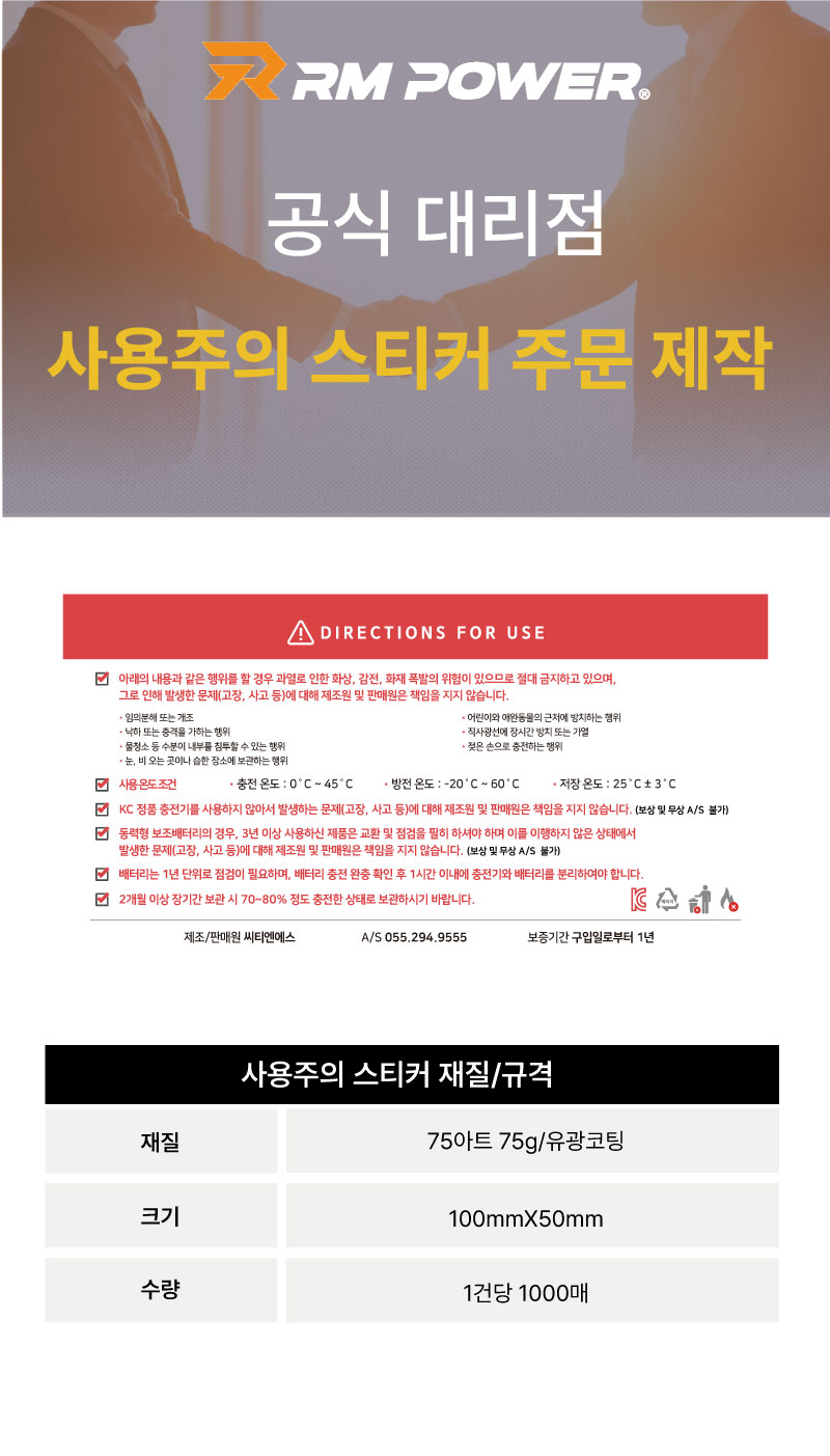 본체 부착용 사용주의 스티커입니다. (100mm*50mm)