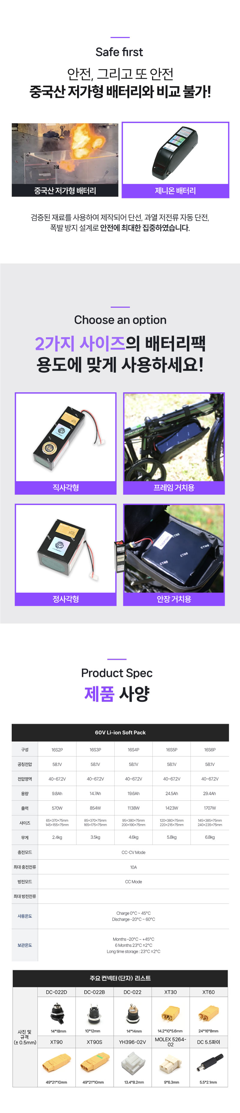 삼성셀 21700 60V 16S3P 15Ah 국산 리튬이온 배터리팩